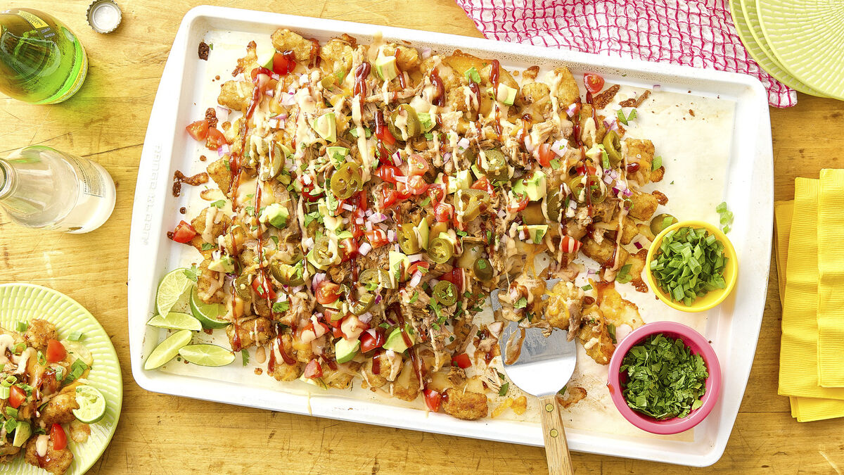 • A plate of burritos on a wood table with Old El Paso sauces and various other ingredients